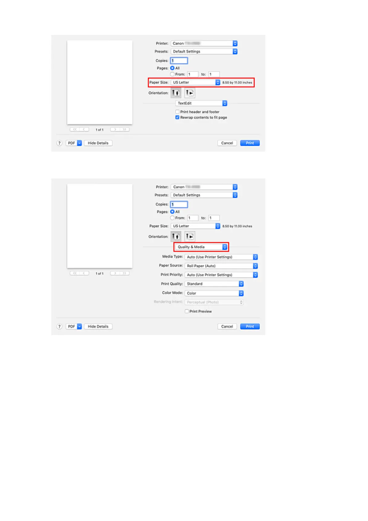 For Media Type, select the same paper type loaded in the printer.