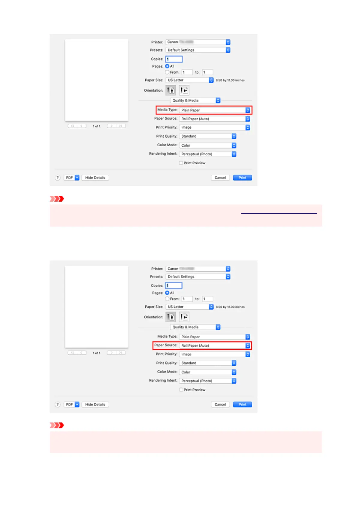 See "Paper Information List" for Canon authentic paper or Canon output check paper.