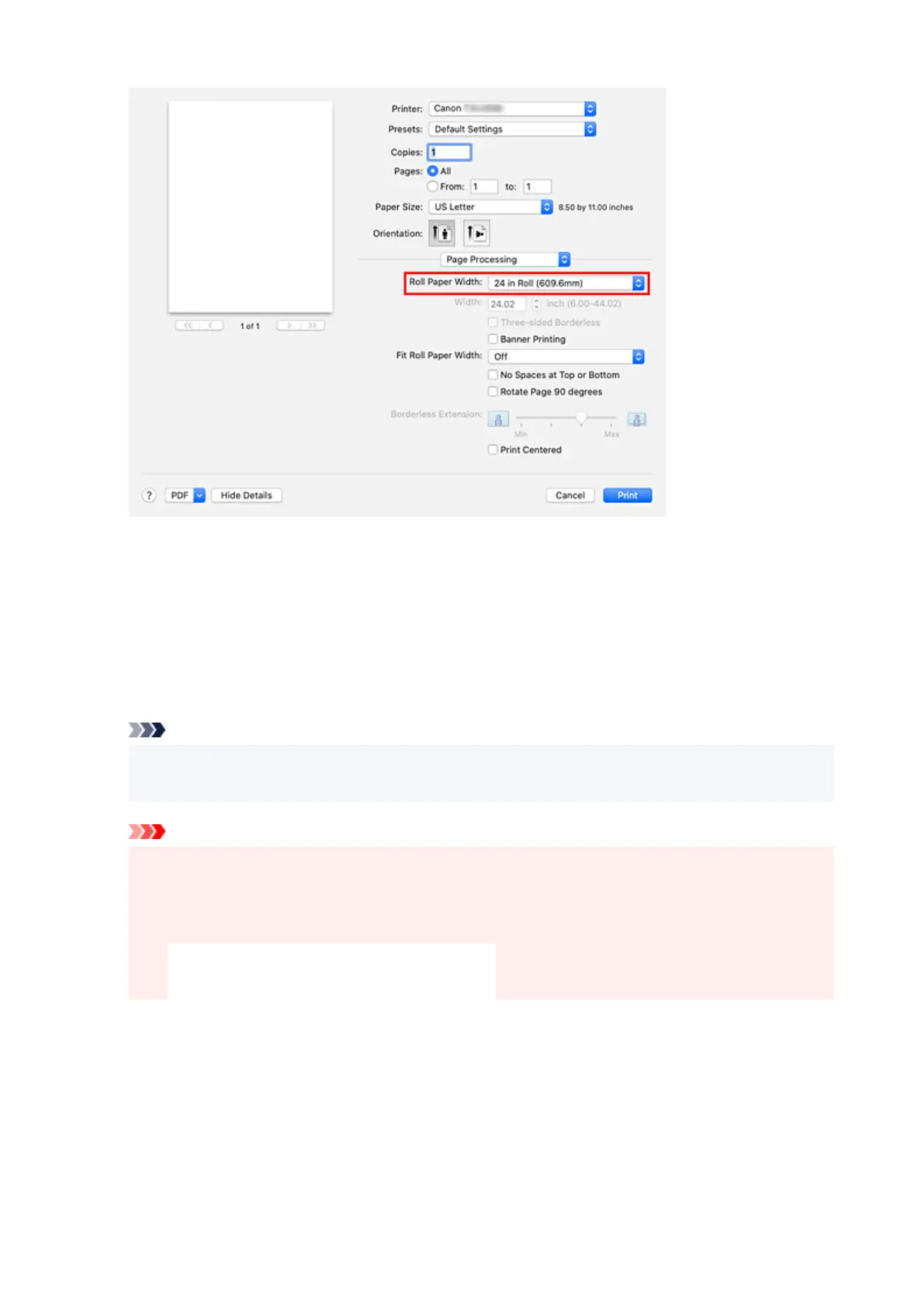 width, select On (Bordered) or On (Borderless) from Fit Roll Paper Width.