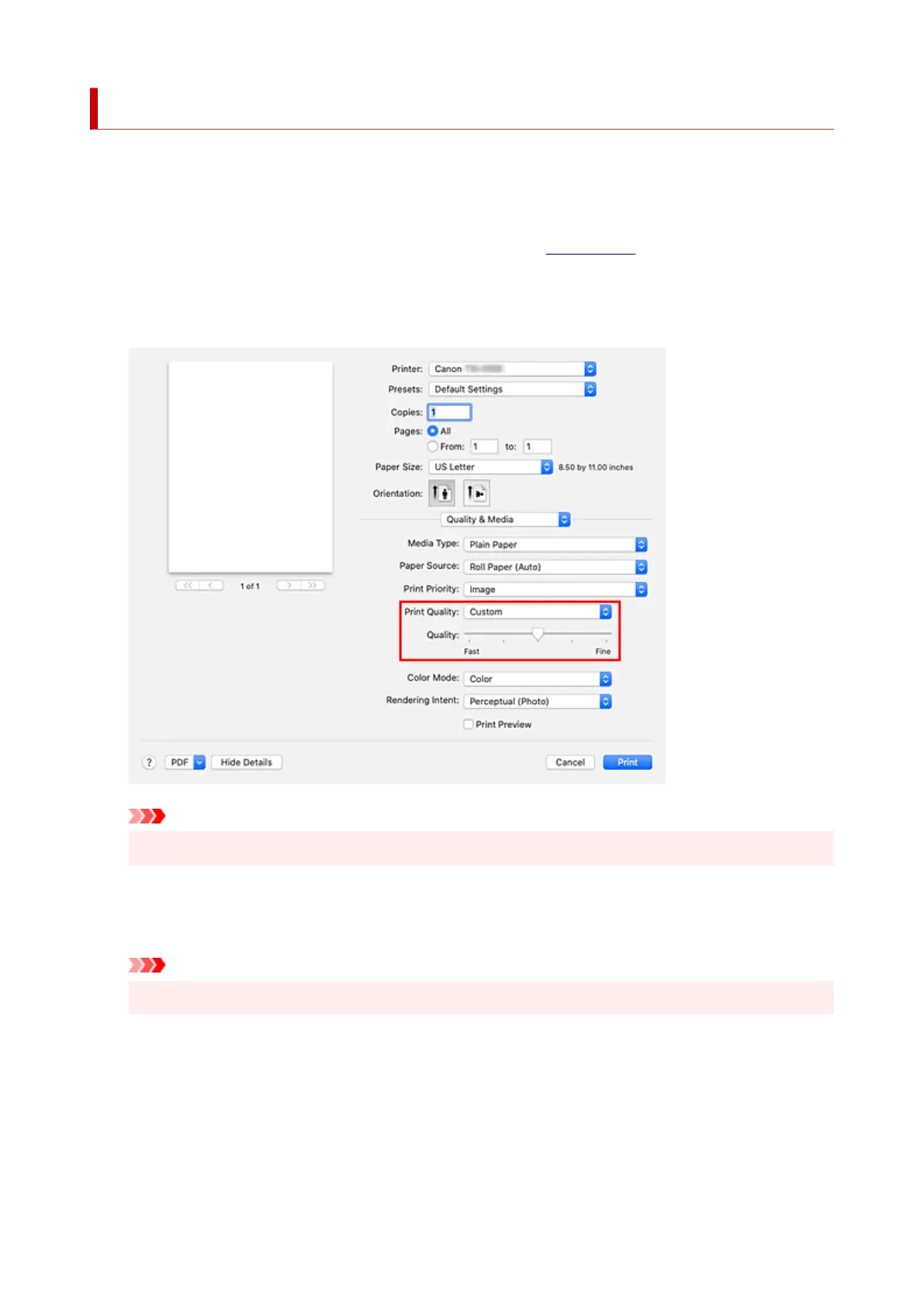 Select Custom for Print Quality.