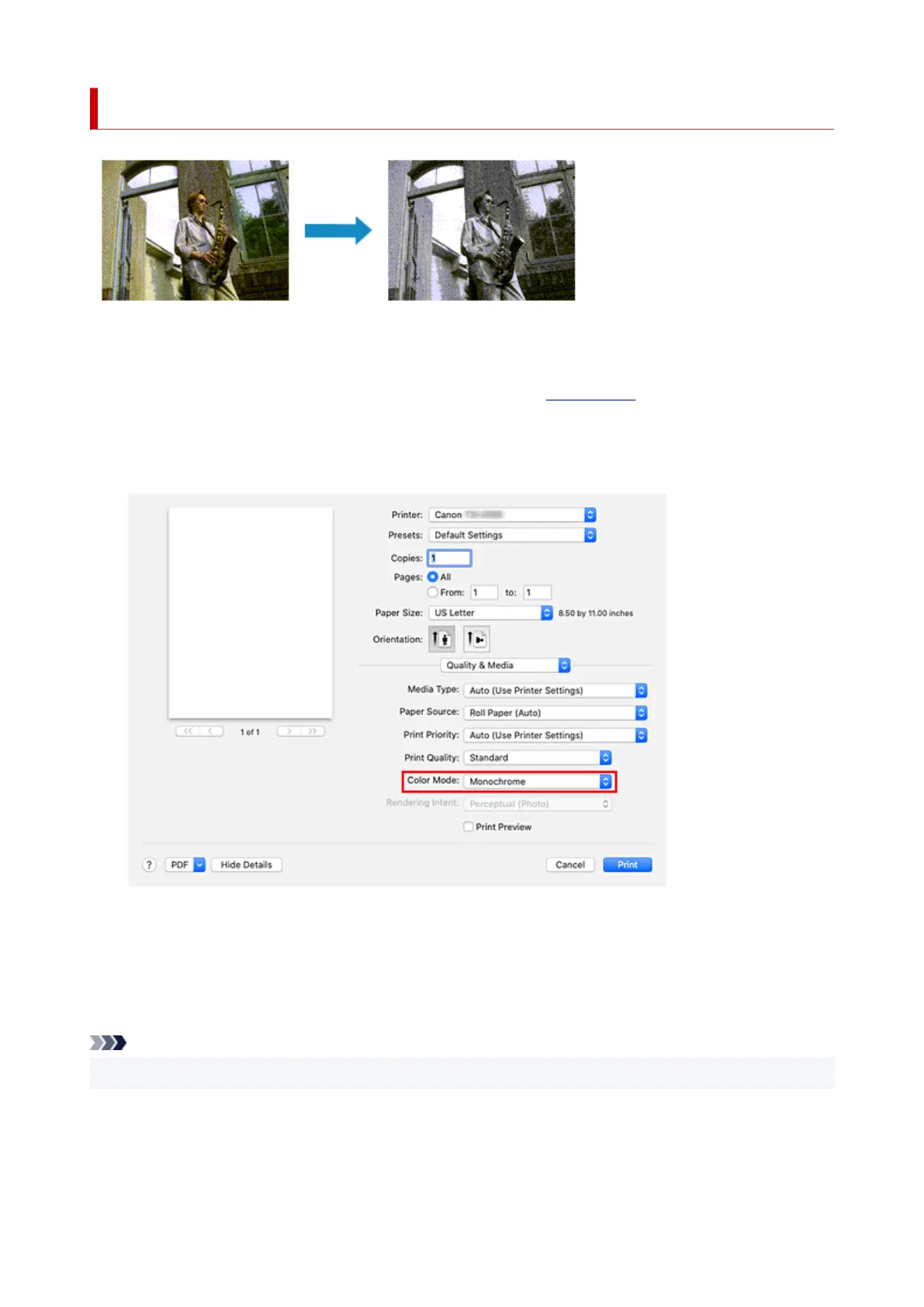 Printing a Color Document in Monochrome