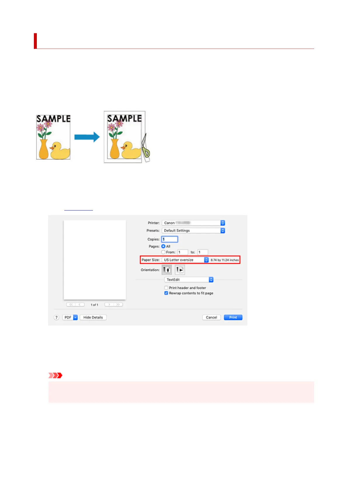 The procedure for printing with oversize is as follows: