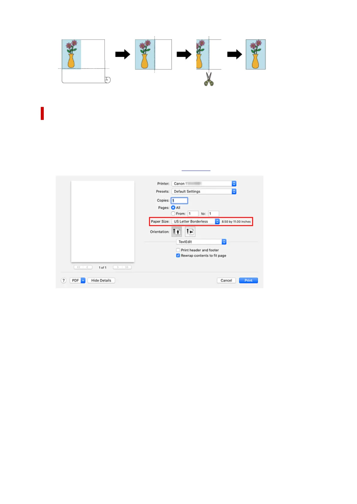 Printing Full-Size without Margins on Three Sides