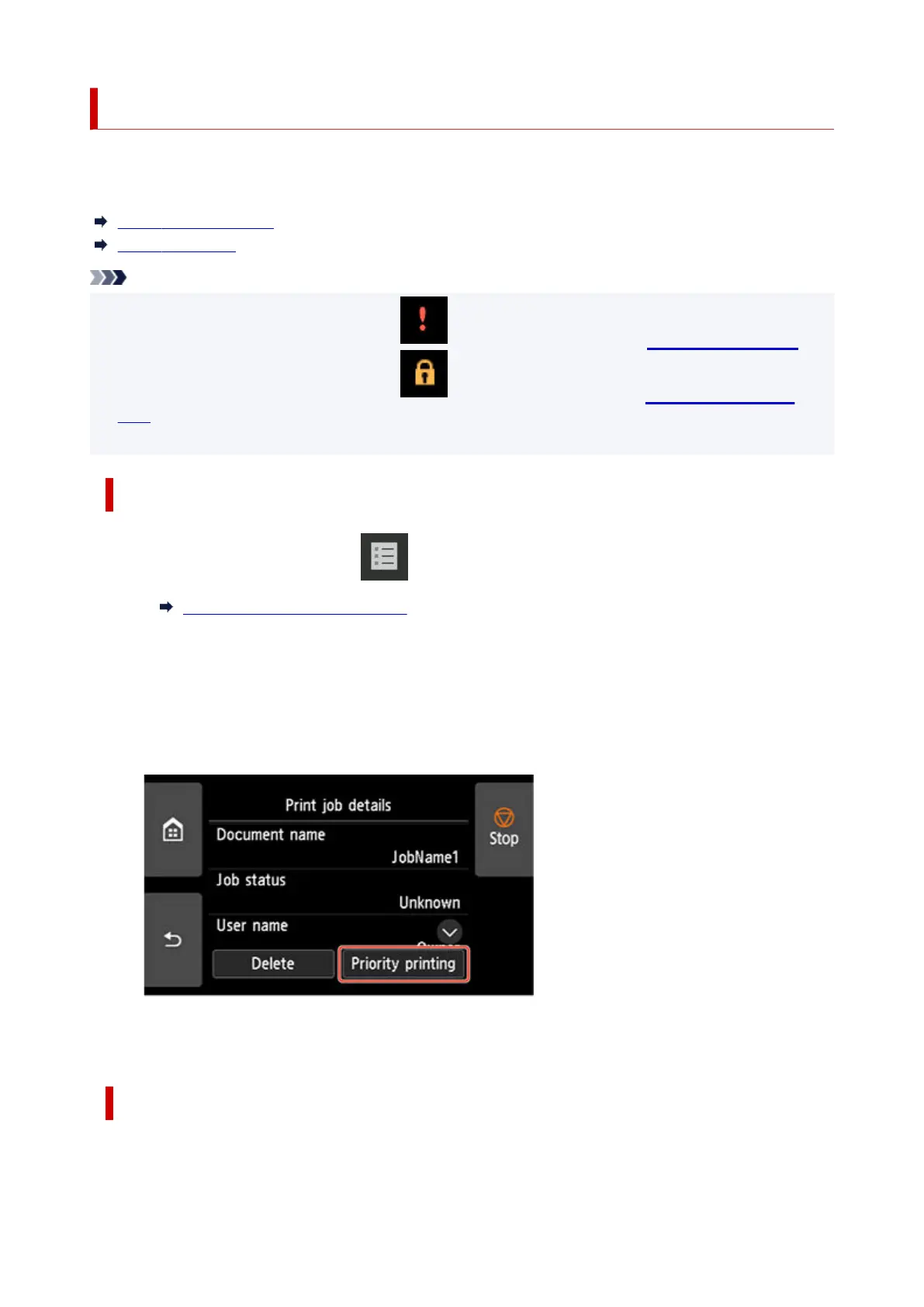 • For the operation of the print job with the icon (pending print job), see Printing Pending Jobs.