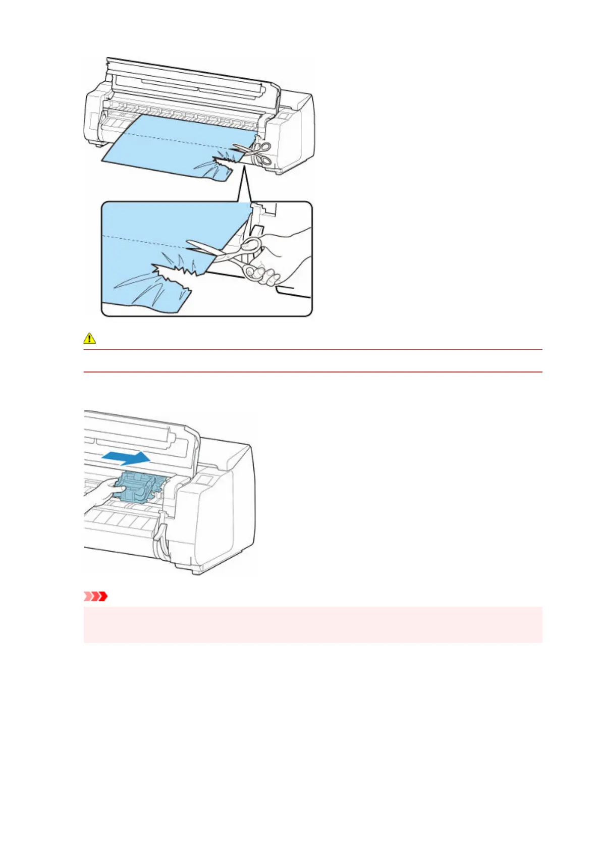 • Be careful not to injure yourself or scratch the printer when cutting.