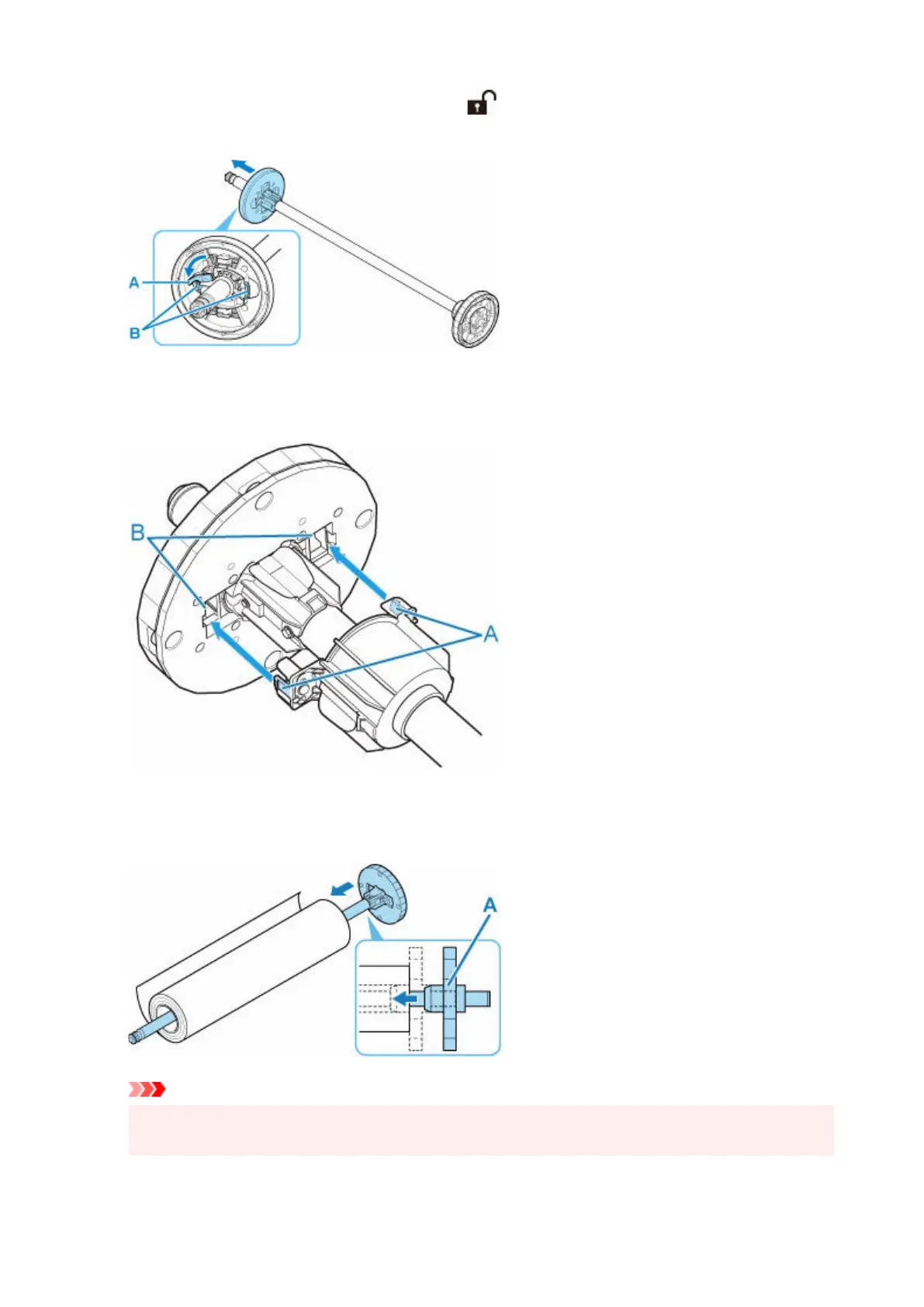 If using 3-inch core paper, align 3-Inch Paper Core Attachment tabs (A) with Roll Holder