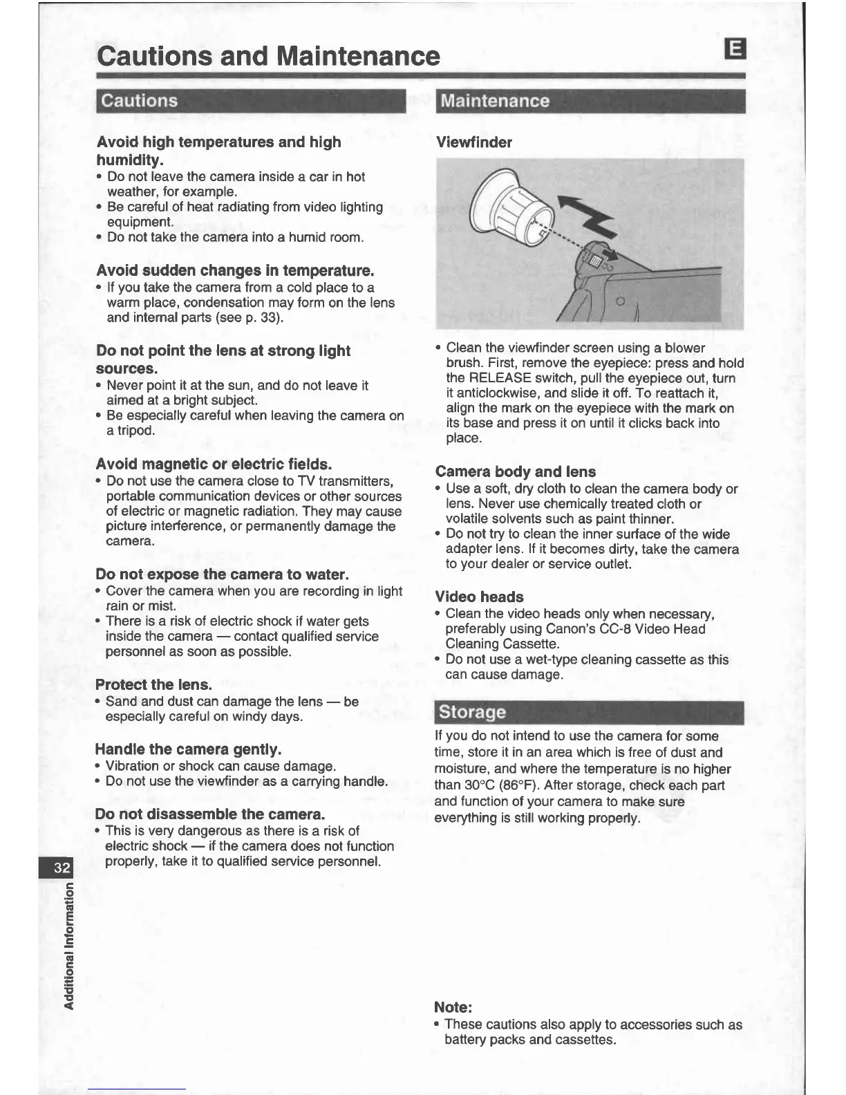 Canon UC 200 - Troubleshooting and Maintenance; Cautions and Storage; Camera Maintenance