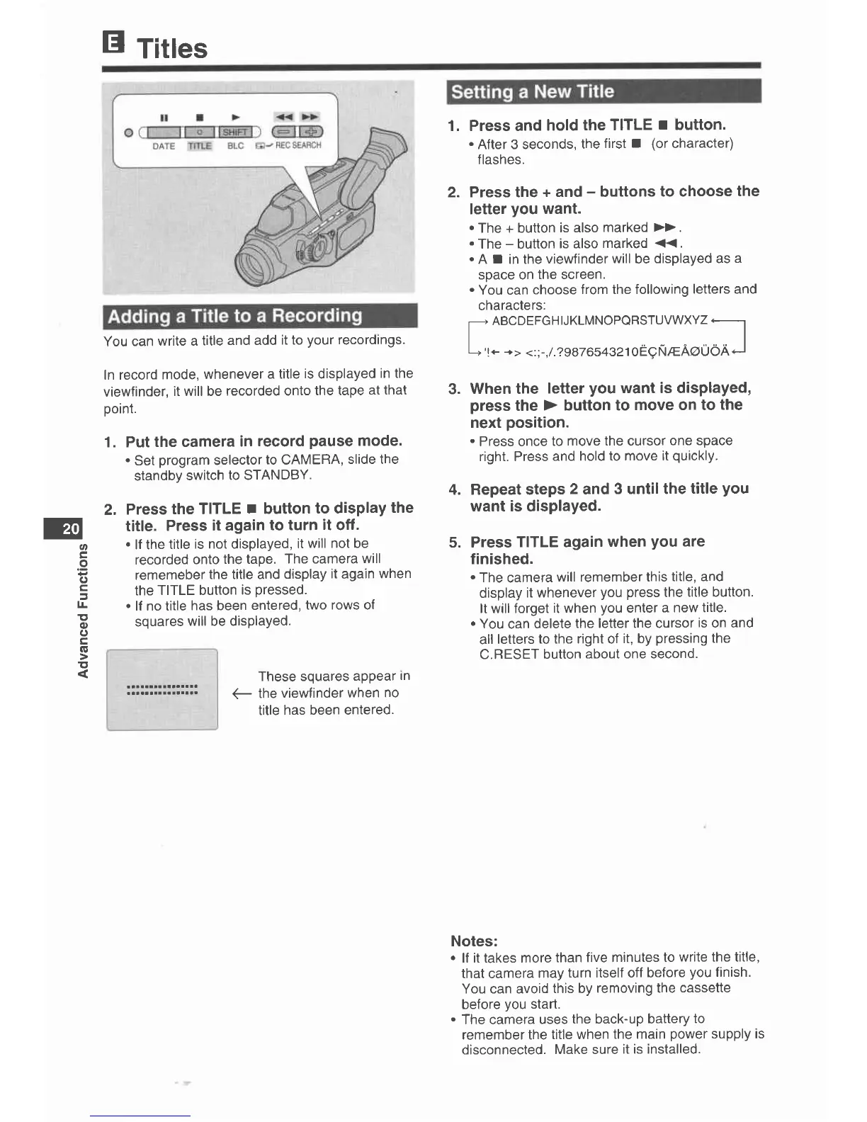 Canon UC 2000 E - Adding a Title to a Recording; Setting a New Title