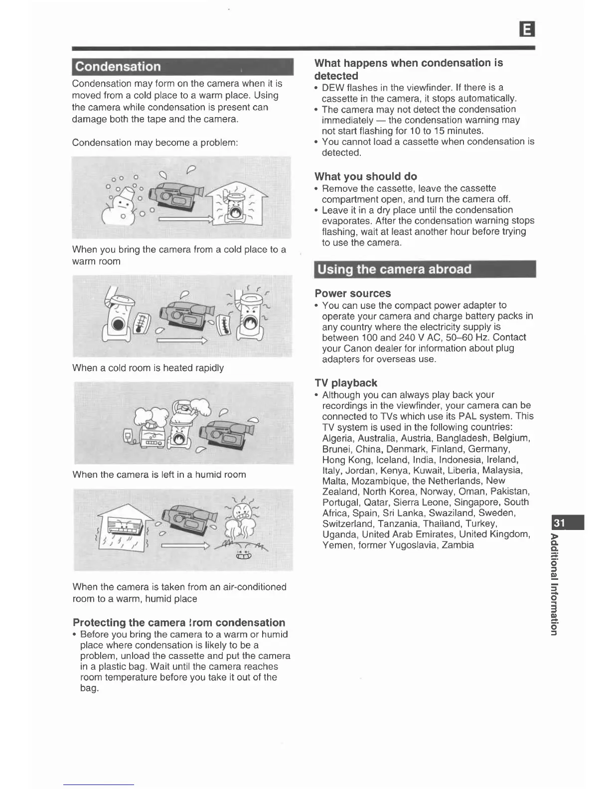 Canon UC 2000 E - Additional Information: Troubleshooting and Specifications; Condensation, Travel, and Viewfinder Displays