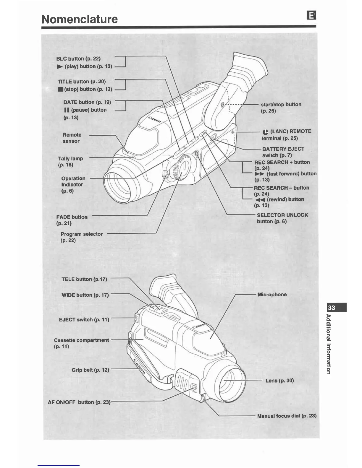 Canon UC 2000 E - Nomenclature and Displays; Camera and Remote Controls Identification