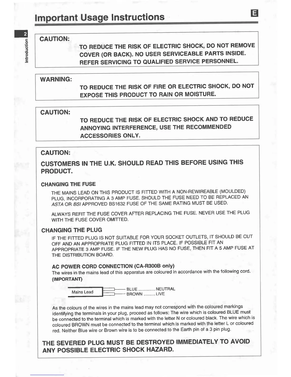 Canon UC 800 - Introduction; Important Usage Instructions