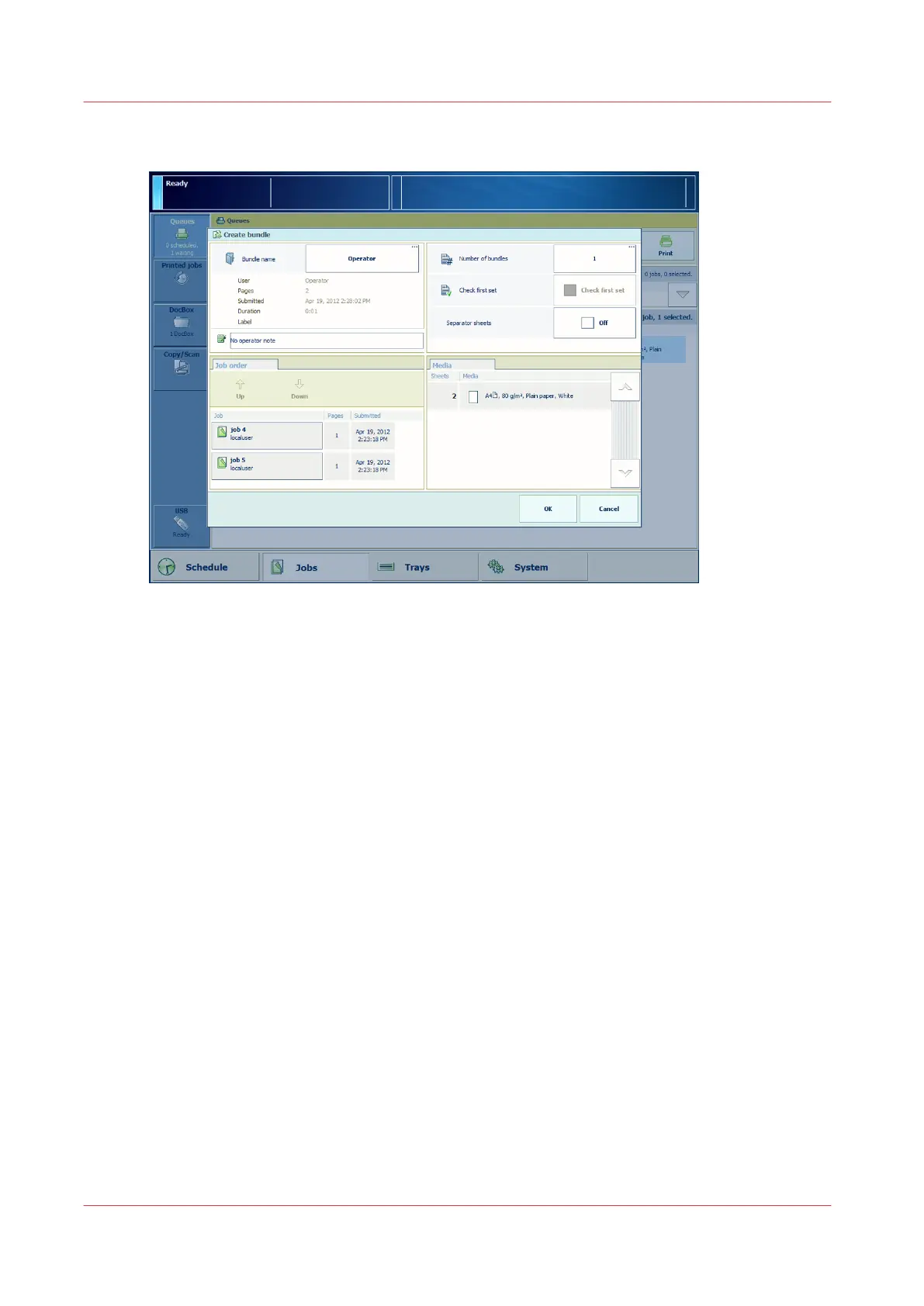 Touch the jobs you want to combine, or use an option from the [Select] menu to select multiple