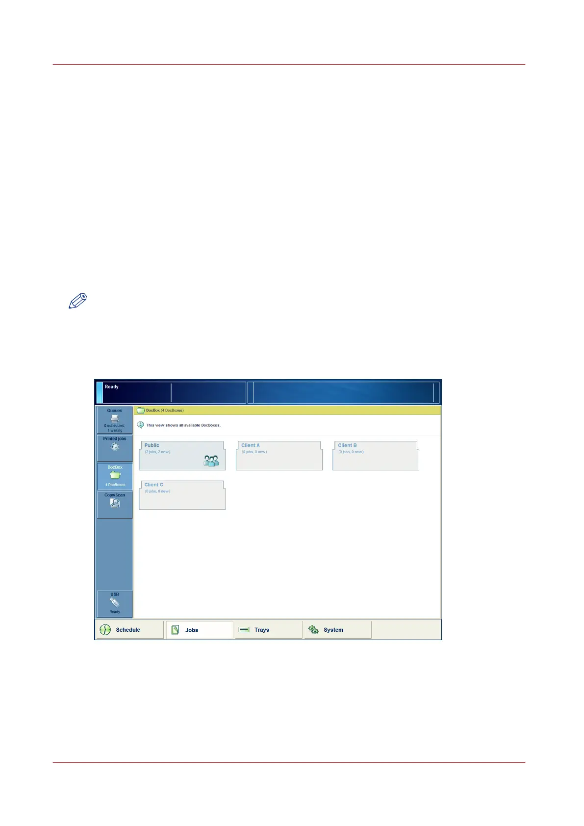 printing of the job. The DocBox supports the operator by offering comprehensive means to store,