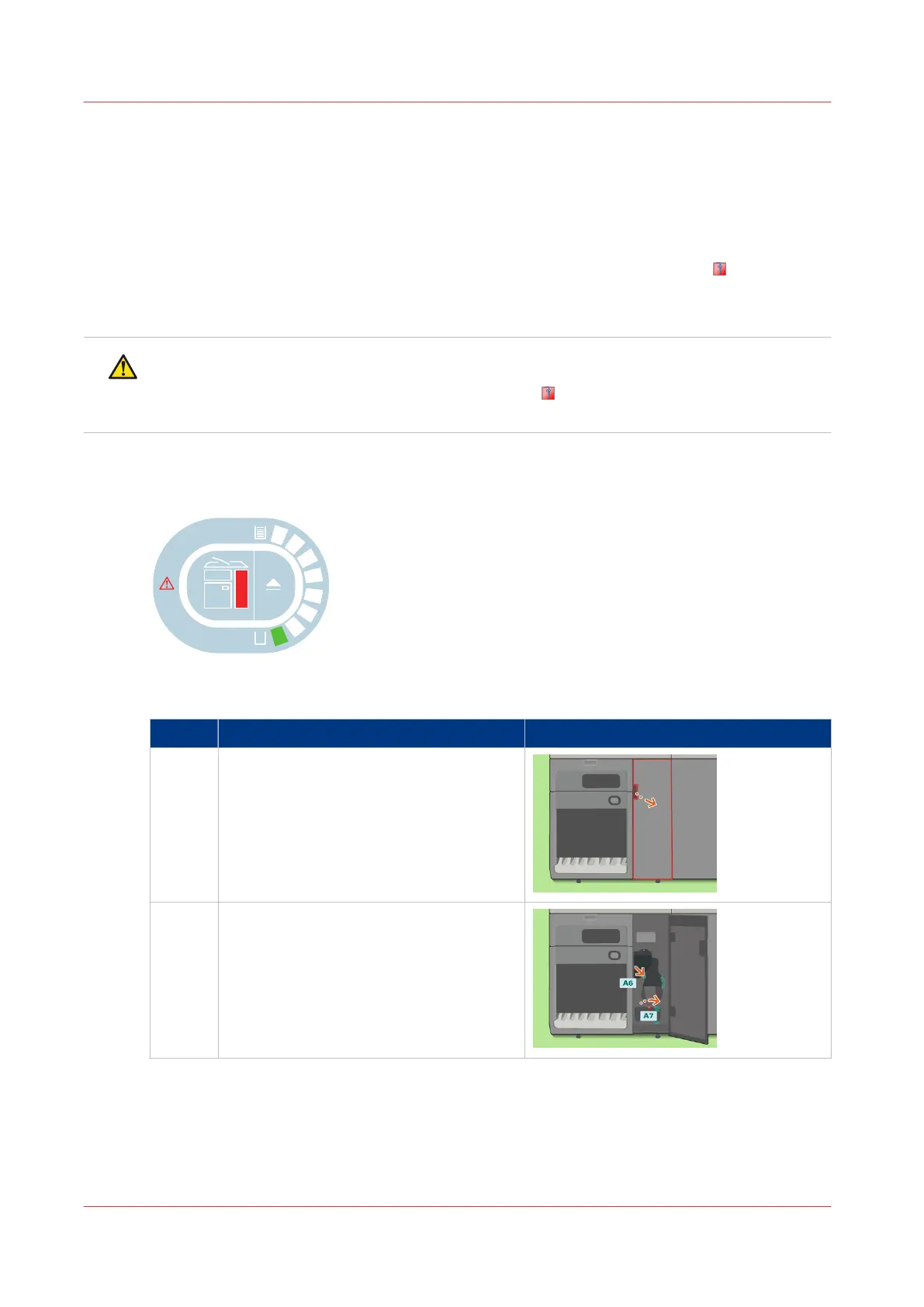 • The printer stops. The printer control panel displays the red maintenance icon