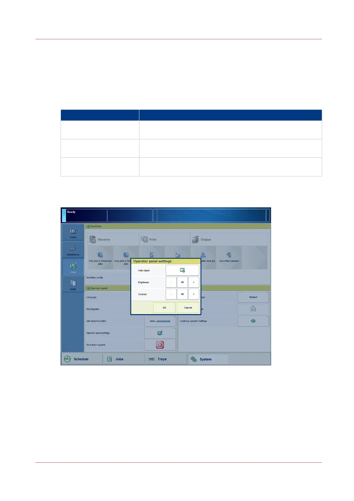 Touch [OK] when the brightness and contrast are OK, or continue with the steps below when