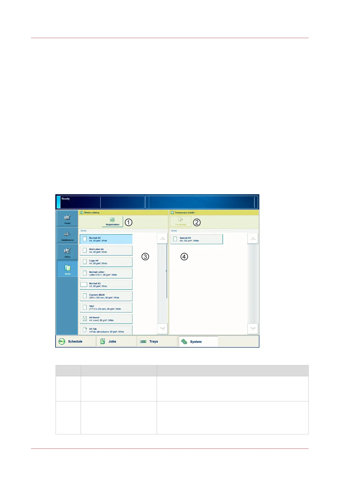 The print system uses a central media catalog from which you can select media for jobs.