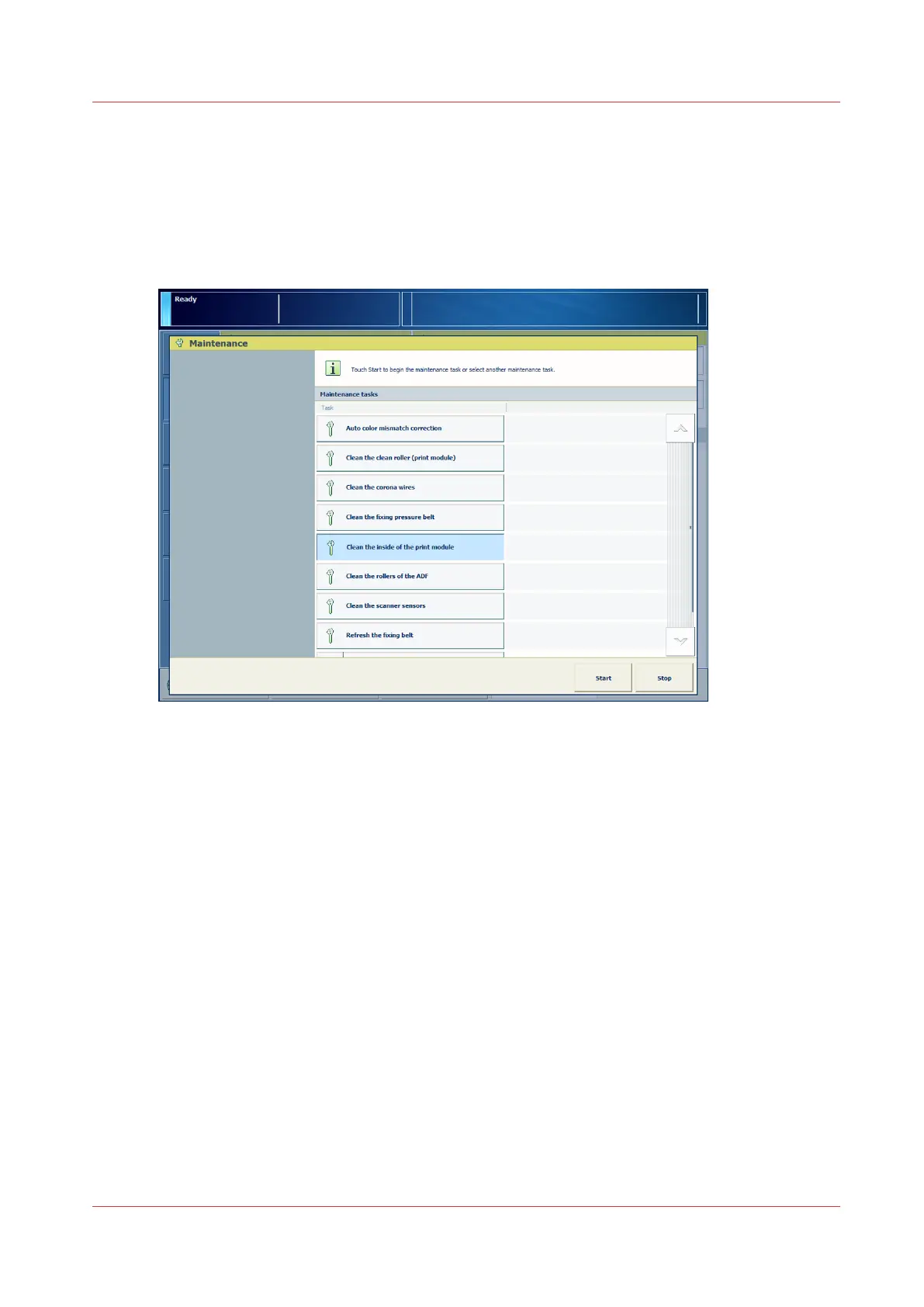 Maintenance operators can perform procedures to clean machine parts or improve the image