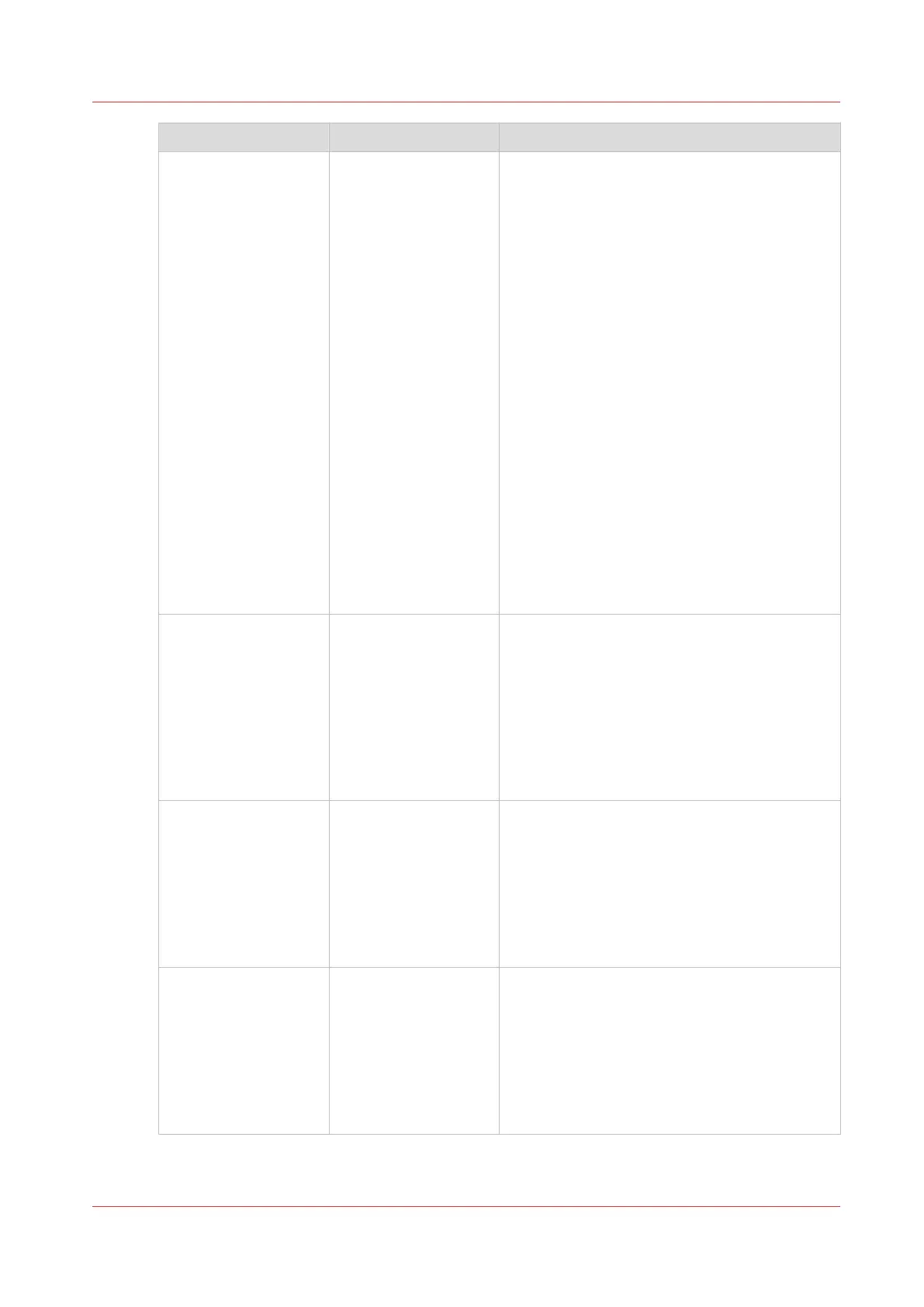Group of settings Available settings Short description