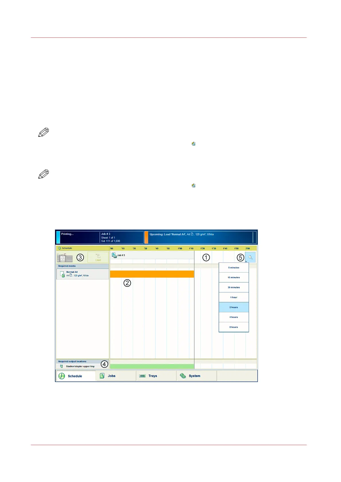 The [Schedule] is your daily planning board for print jobs. The [Schedule] helps you to keep the