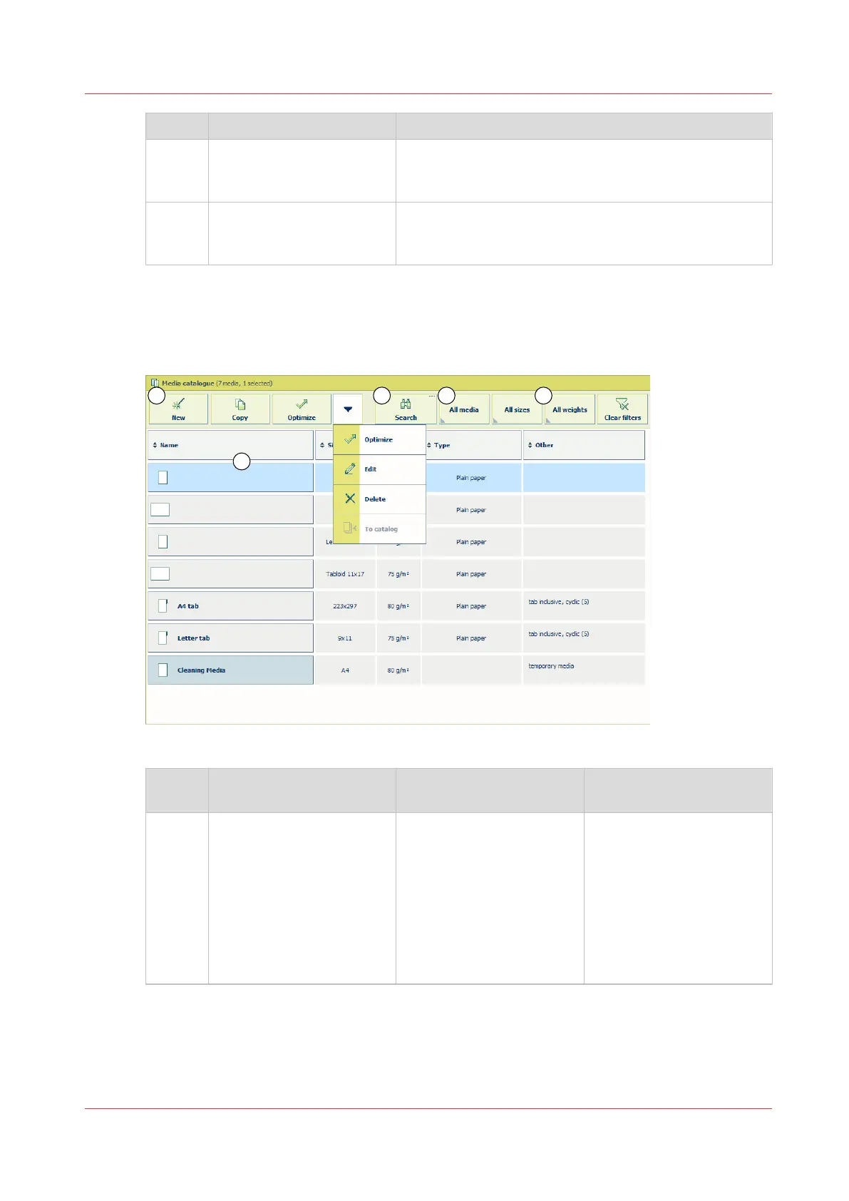 4 List of temporary media The list displays the temporary media that are currently