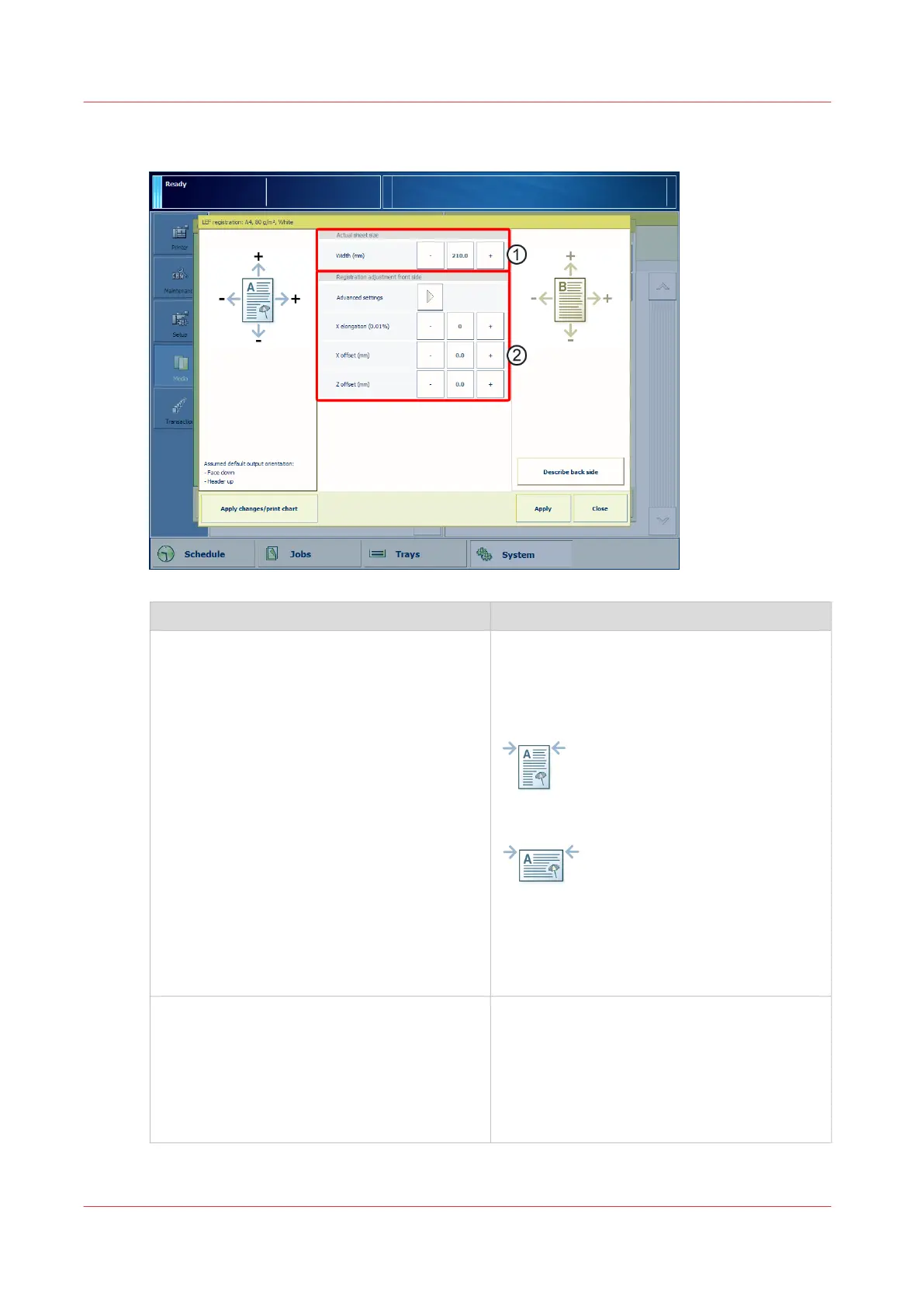 Upper section (1) The actual sheet size measured in the feed di-