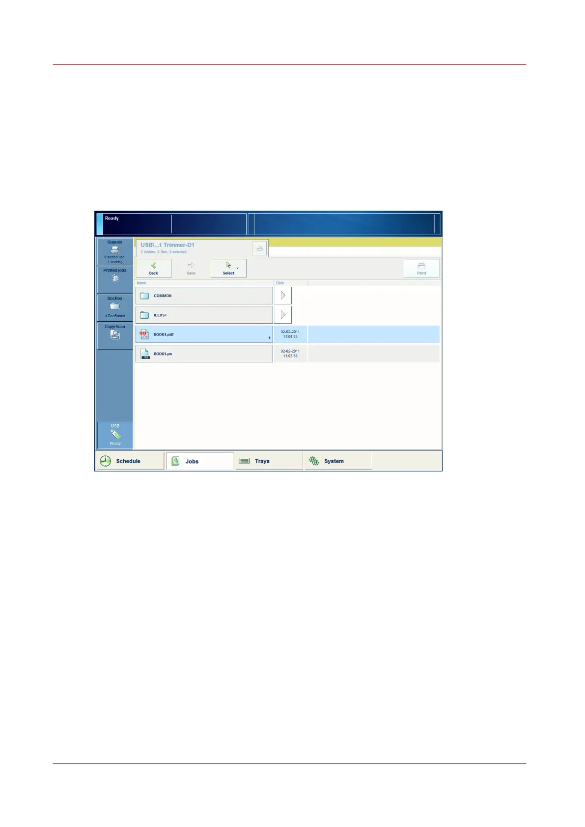 You can print documents (*.pdf, *.ps, *.prn, *.xps files) on a USB drive.