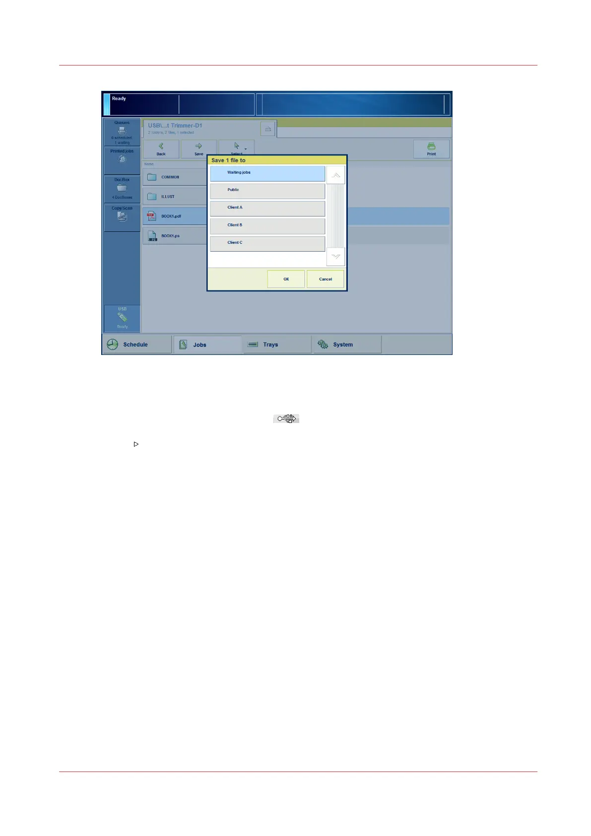 Touch [Save] to save a copy of the file to another location on your printer such as the list of