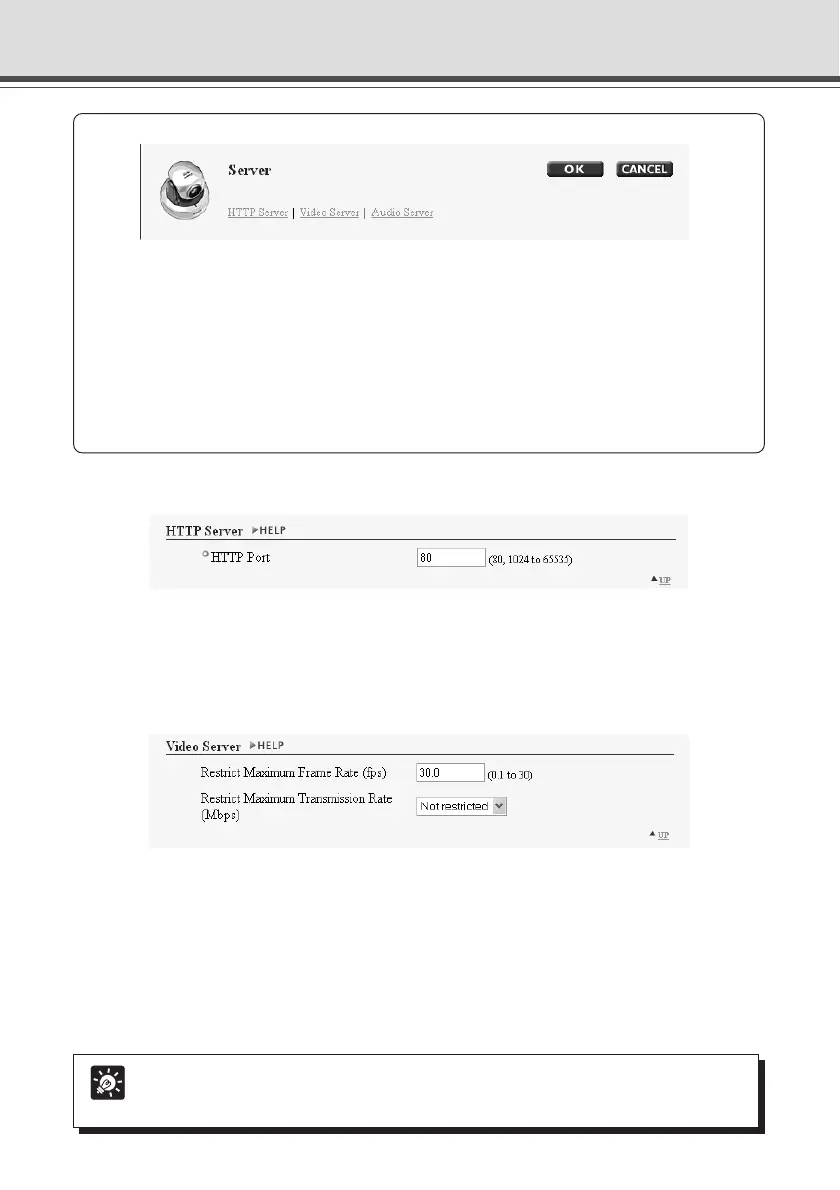 Setting HTTP Server, Video Server, and Audio Server (Server)
