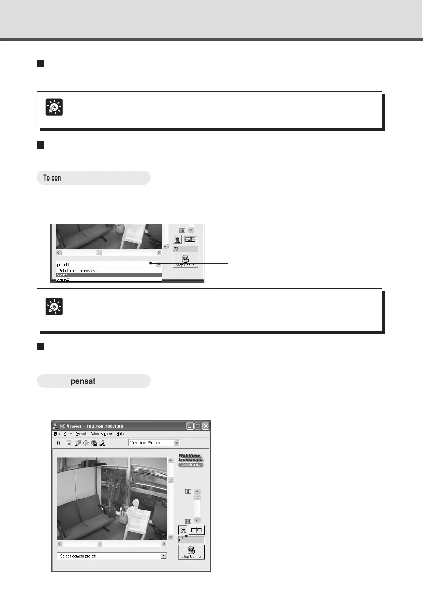 You can control the camera using a preset which is added and saved in advance (→ P.2-9).