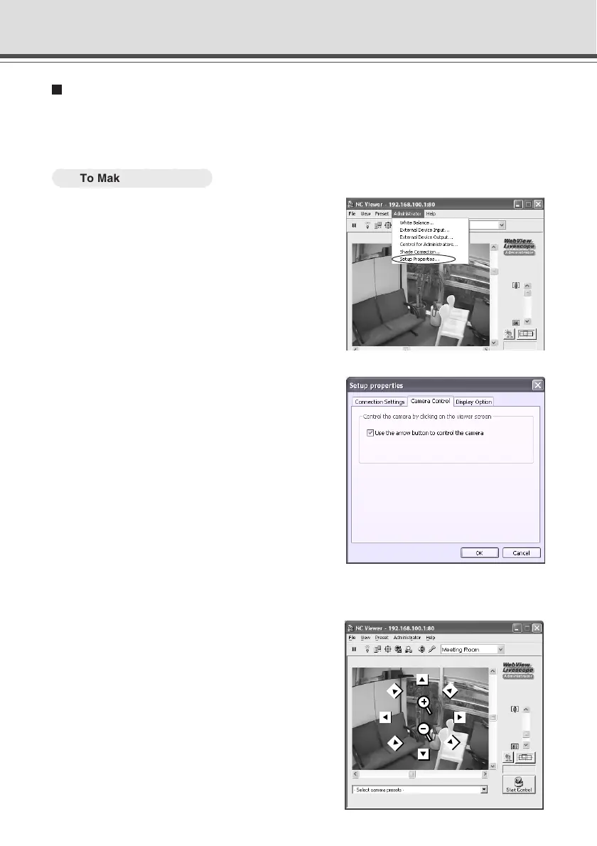 If you have connected to the camera as Administrator, you can control the pan, tilt and zoom