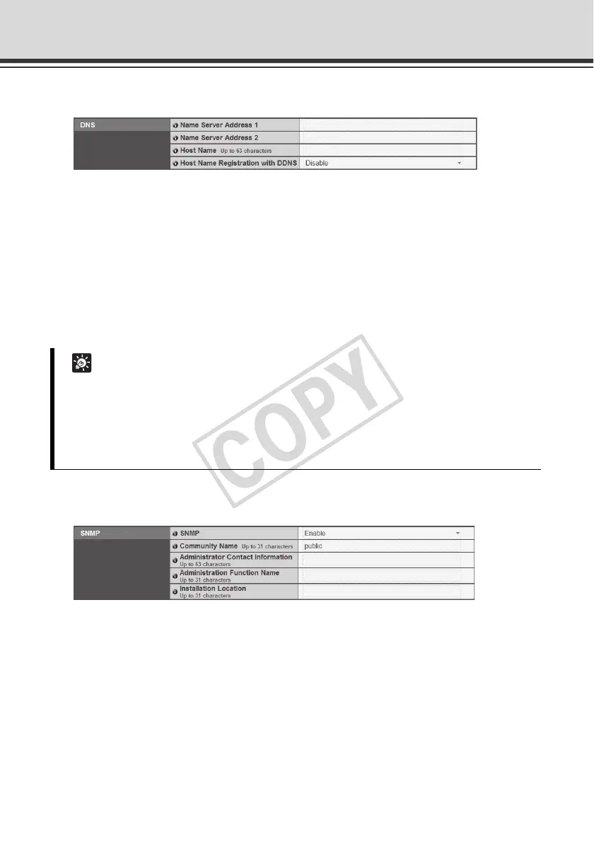 Select whether to use SNMP from [Disable] or [Enable]. When [Enable] is selected, the SNMP