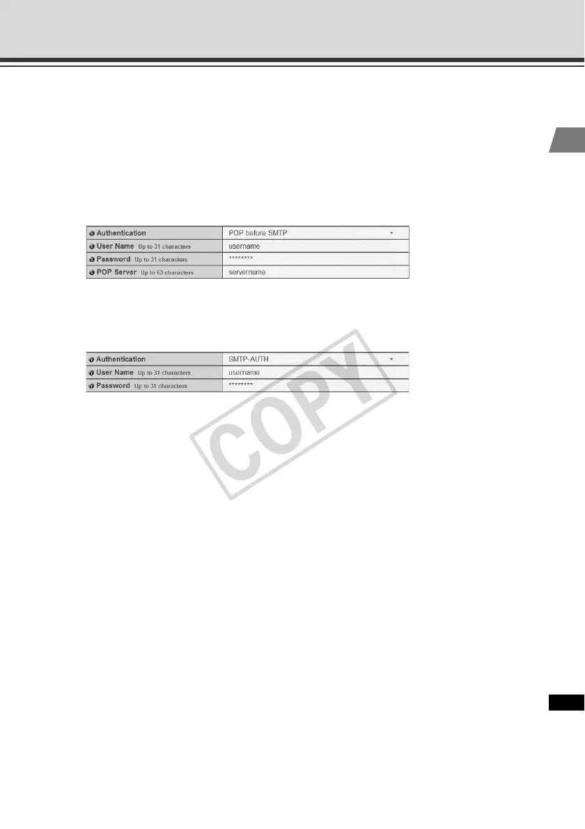 Select [None], [POP before SMTP] or [SMTP-AUTH] as the e-mail authentication mode.