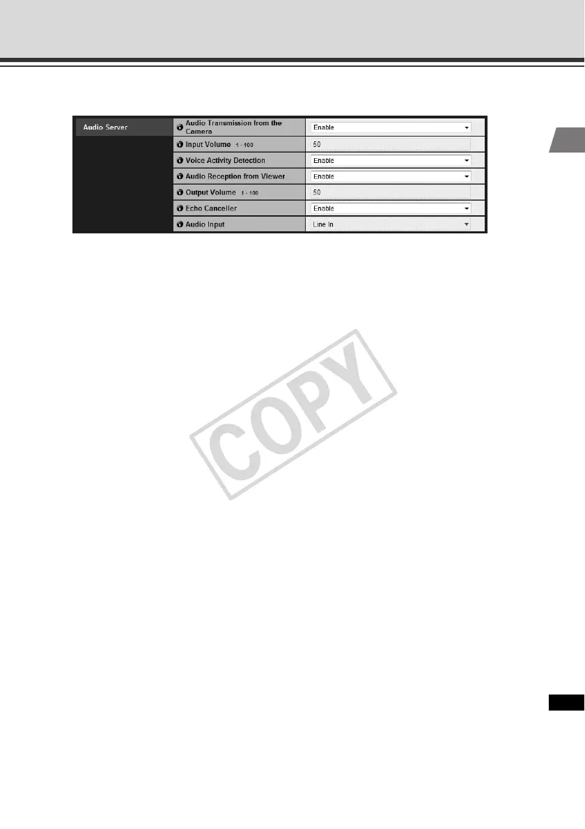 When [Enable] is selected, the audio input through the microphone attached to the camera