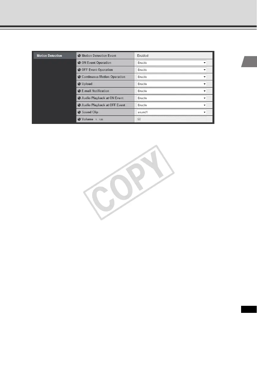 Whether motion detection events are enabled/disabled is shown. The value of this item can