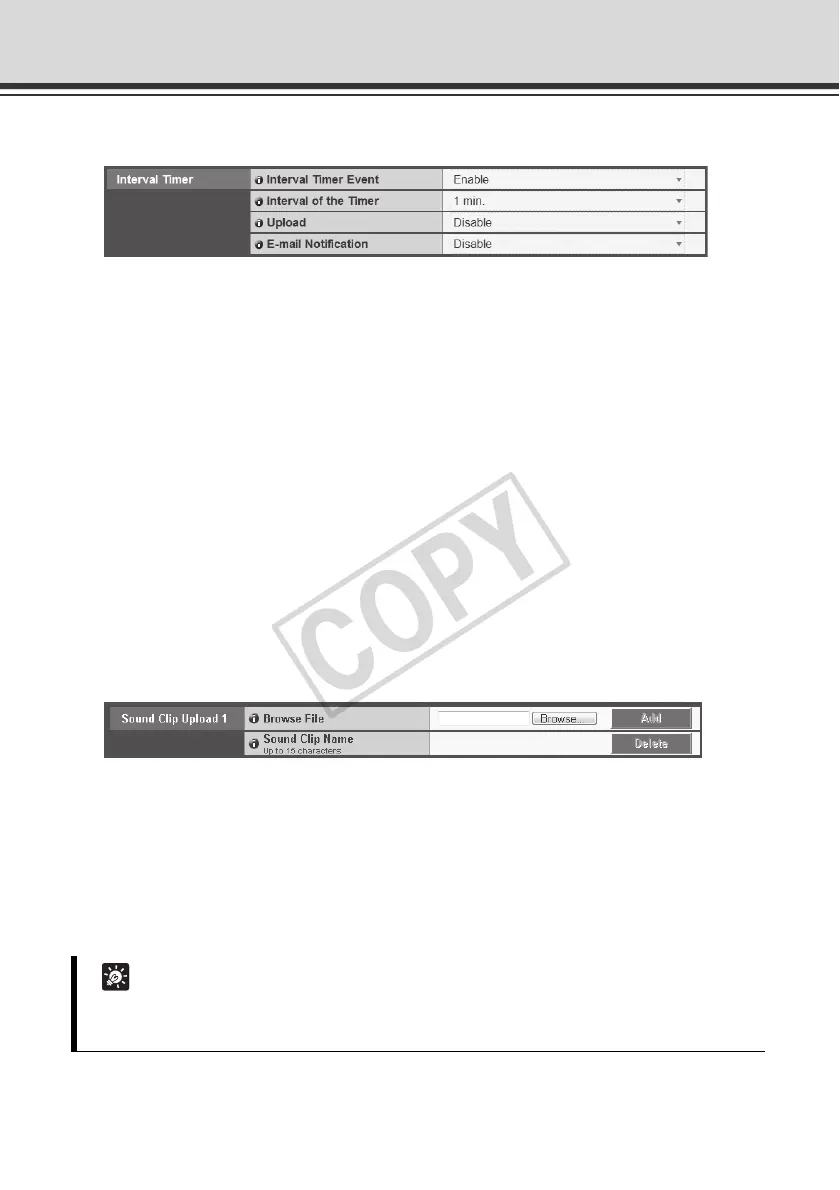 Setting the Image Buffer, Motion Detection, Audio Playback and Interval Timer (Event)
