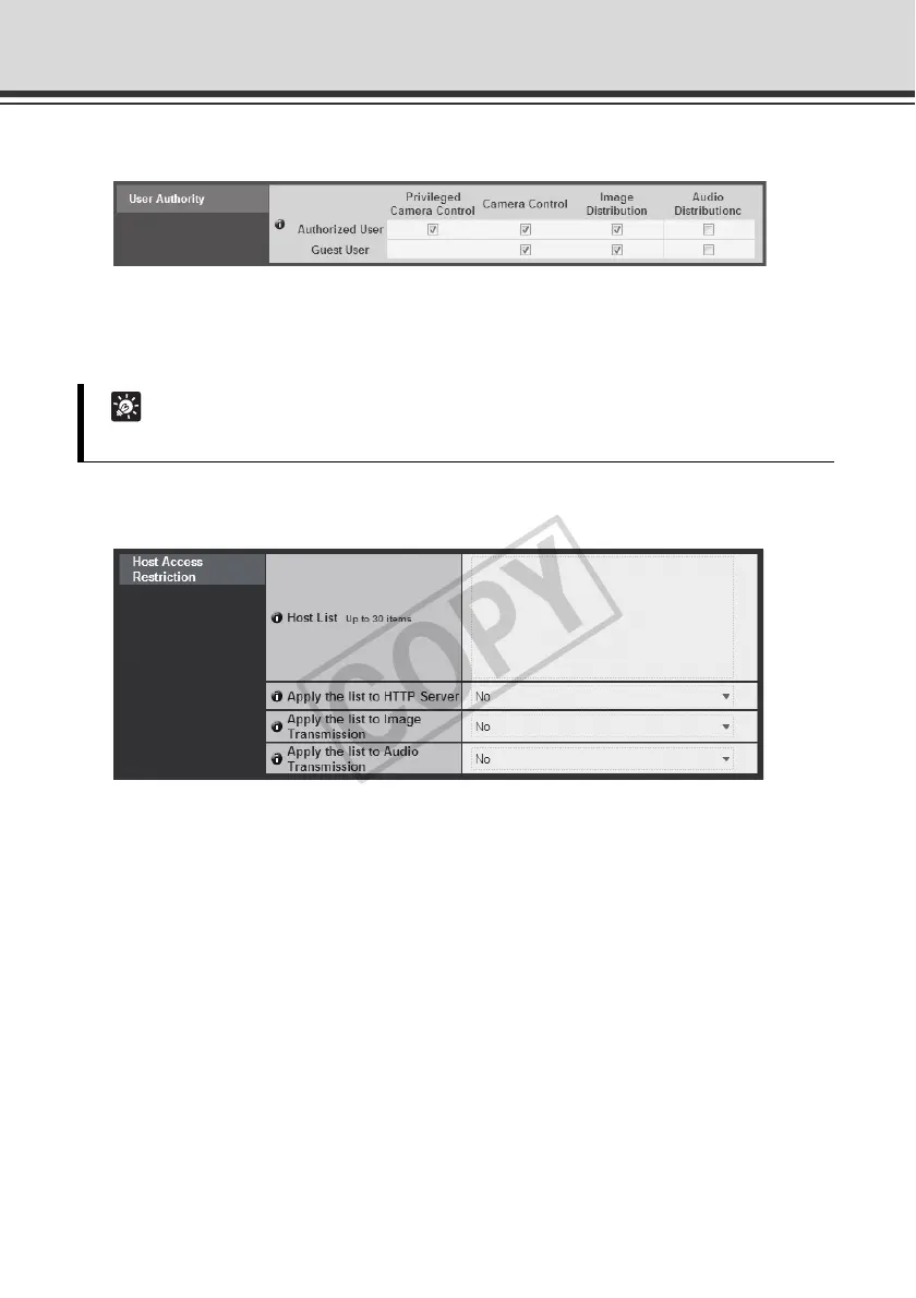 If [Ye s] is selected, the host list is applied to HTTP server access. Not only access from