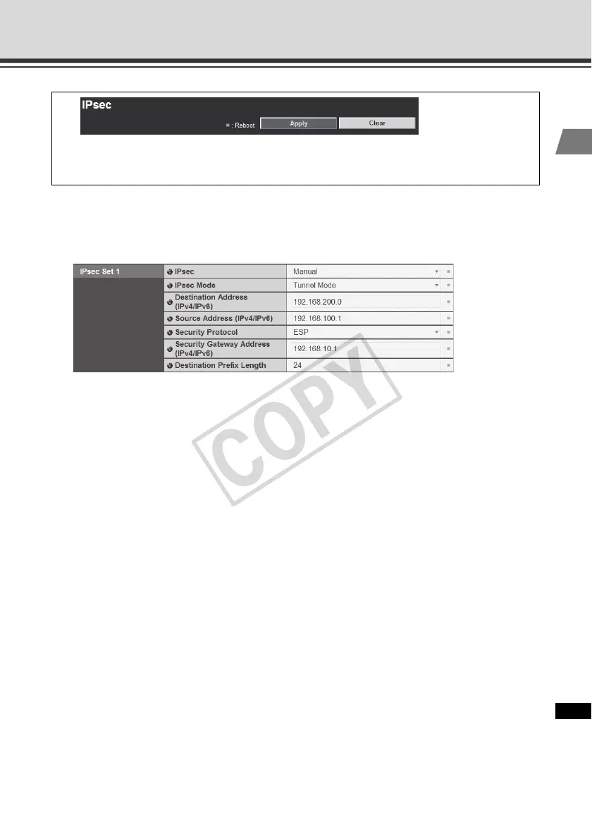 IPsec Sets 1 to 5 are available, where IPsec settings for each communication using each IPsec