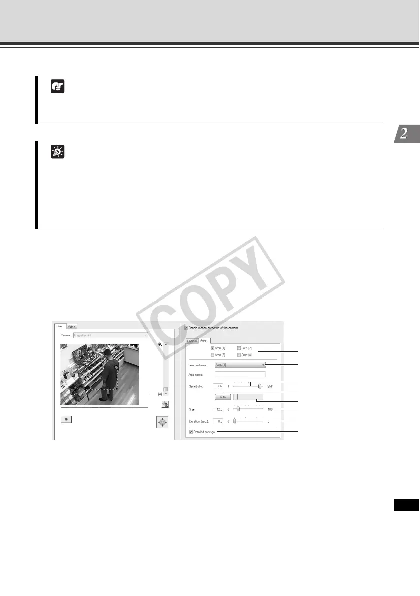 3. Set the motion detection area ([Area] tab).