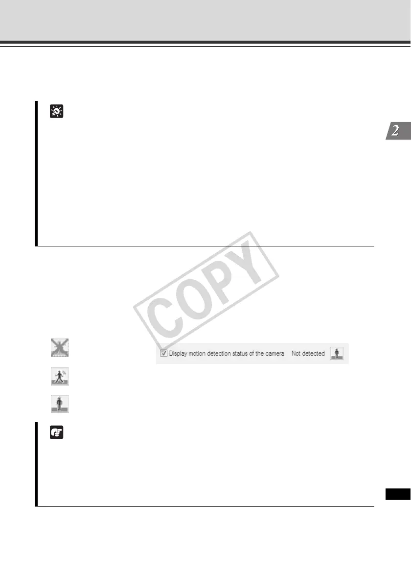 If the [Display motion detection status of the camera] check box is selected, the settings