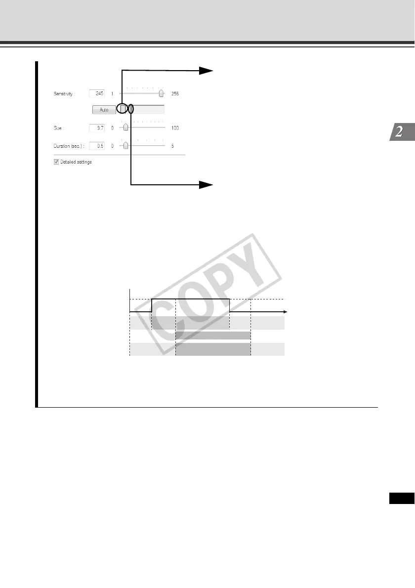 If a motion corresponding to [Size] or greater has remained detected for the specified