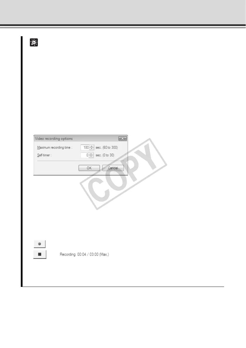 Set the maximum recording time. Set a desired value in a range of 60 to 300 seconds.