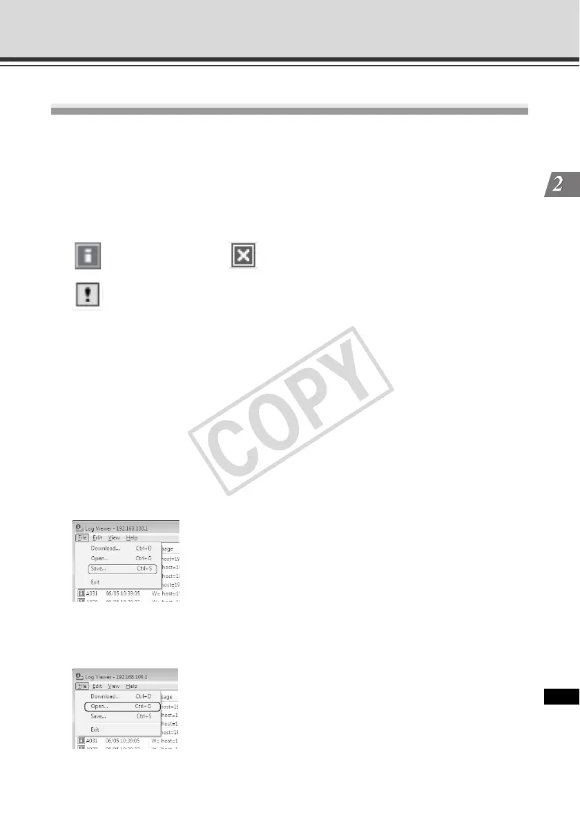 Select [Open] from [File] in the menu bar and then select the log file you want to view.