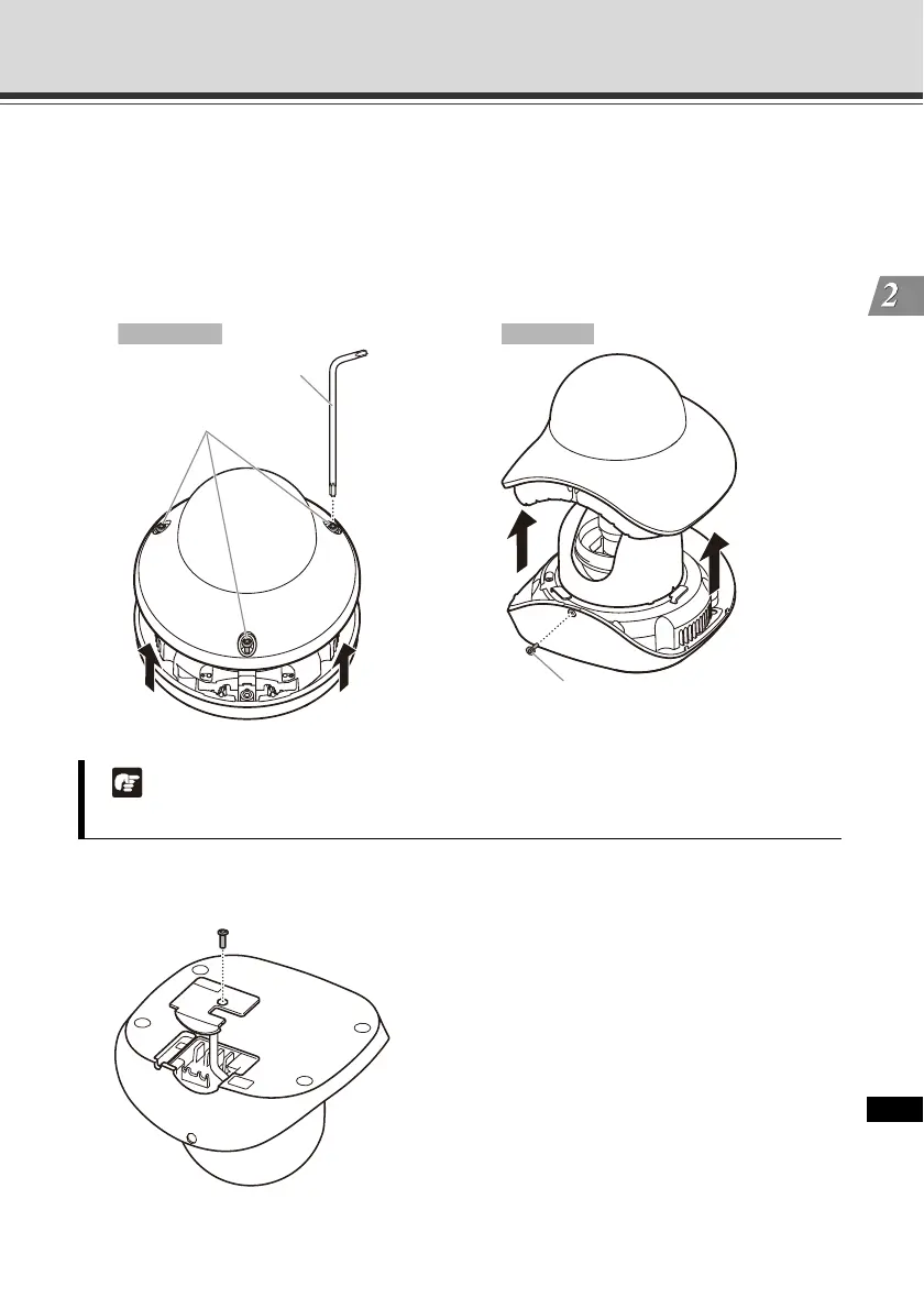 Loosen the three dome case lock screws using the bundled dome case lock screw wrench.