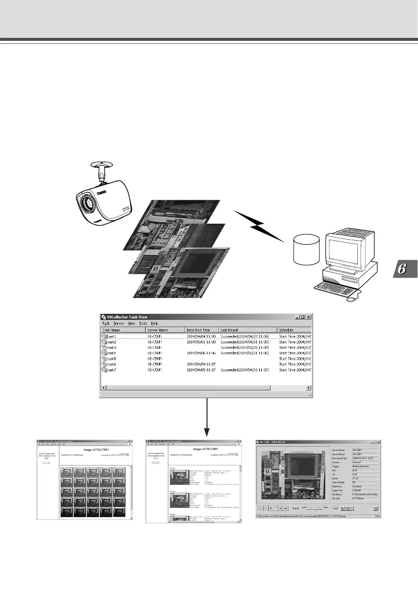 detection or picture recording. VBCollector accesses the VB-C50Fi at specific times expressed in