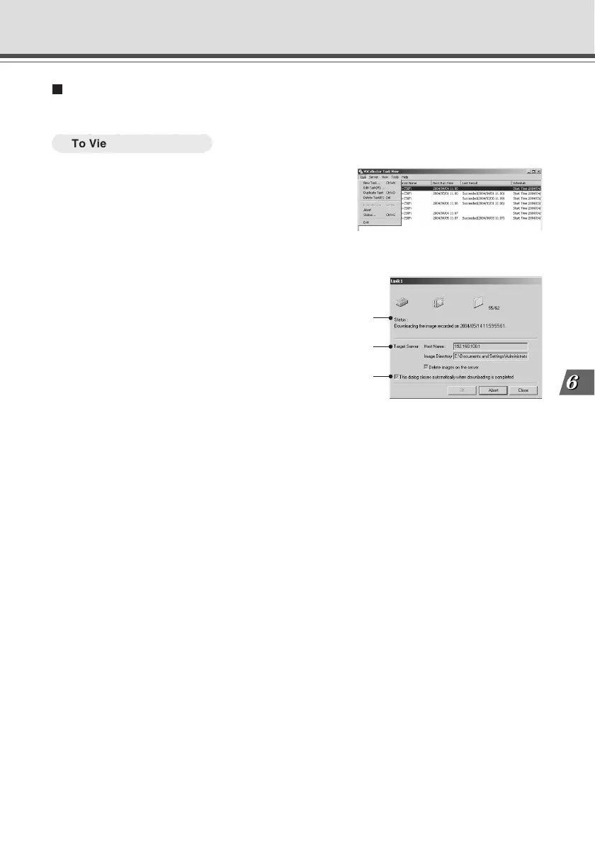 Shows the host name of image download server set in the server information (→ P.6-11).