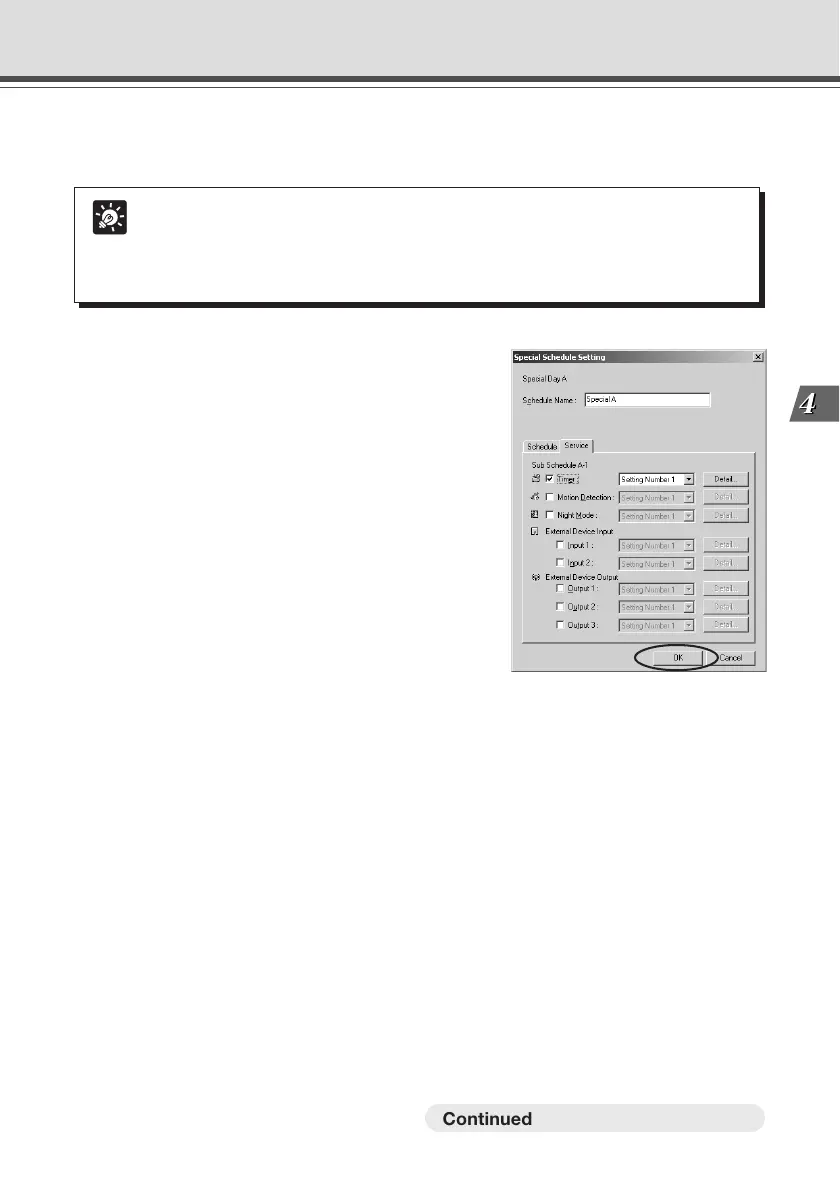 ● A setting number entered from the Service Setting tab in the Schedule Setting