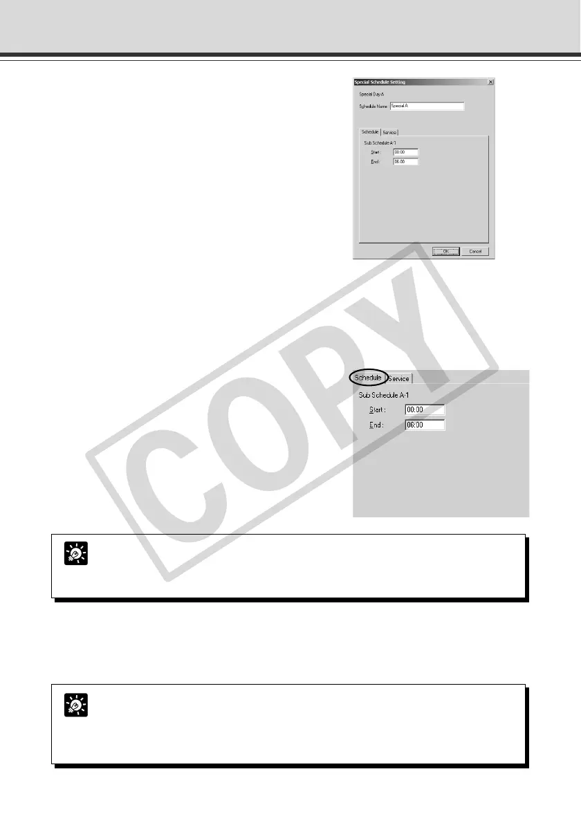 The Special Schedule Settings dialog box appears.