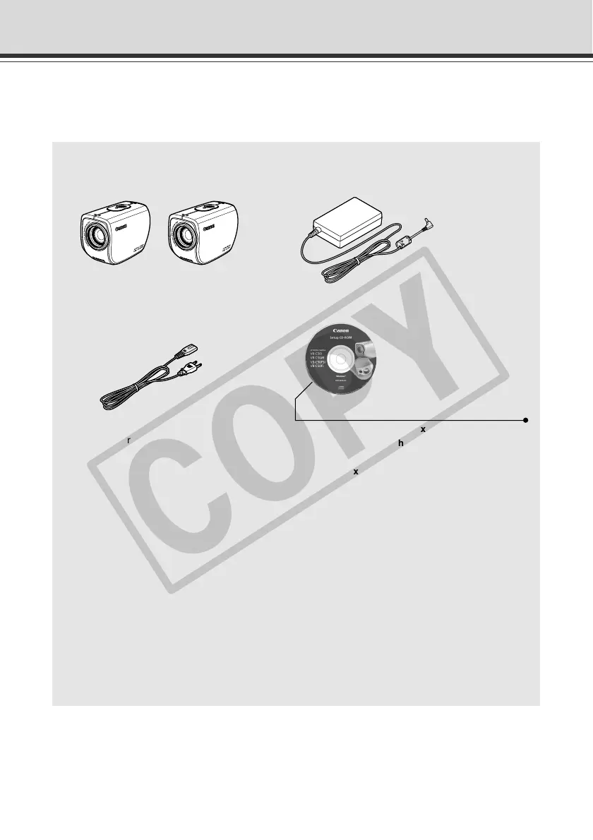 The VB-C50FSi/VB-C50Fi package contains the following items. If any of these items is missing,