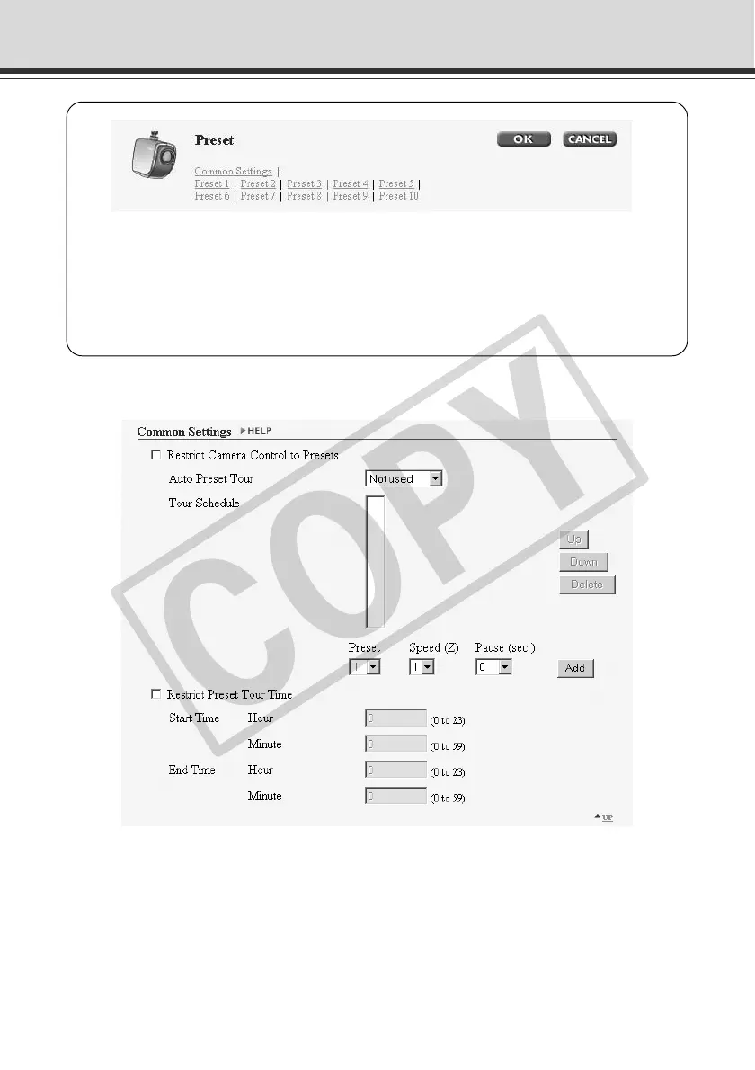 You can perform the following settings with Preset.