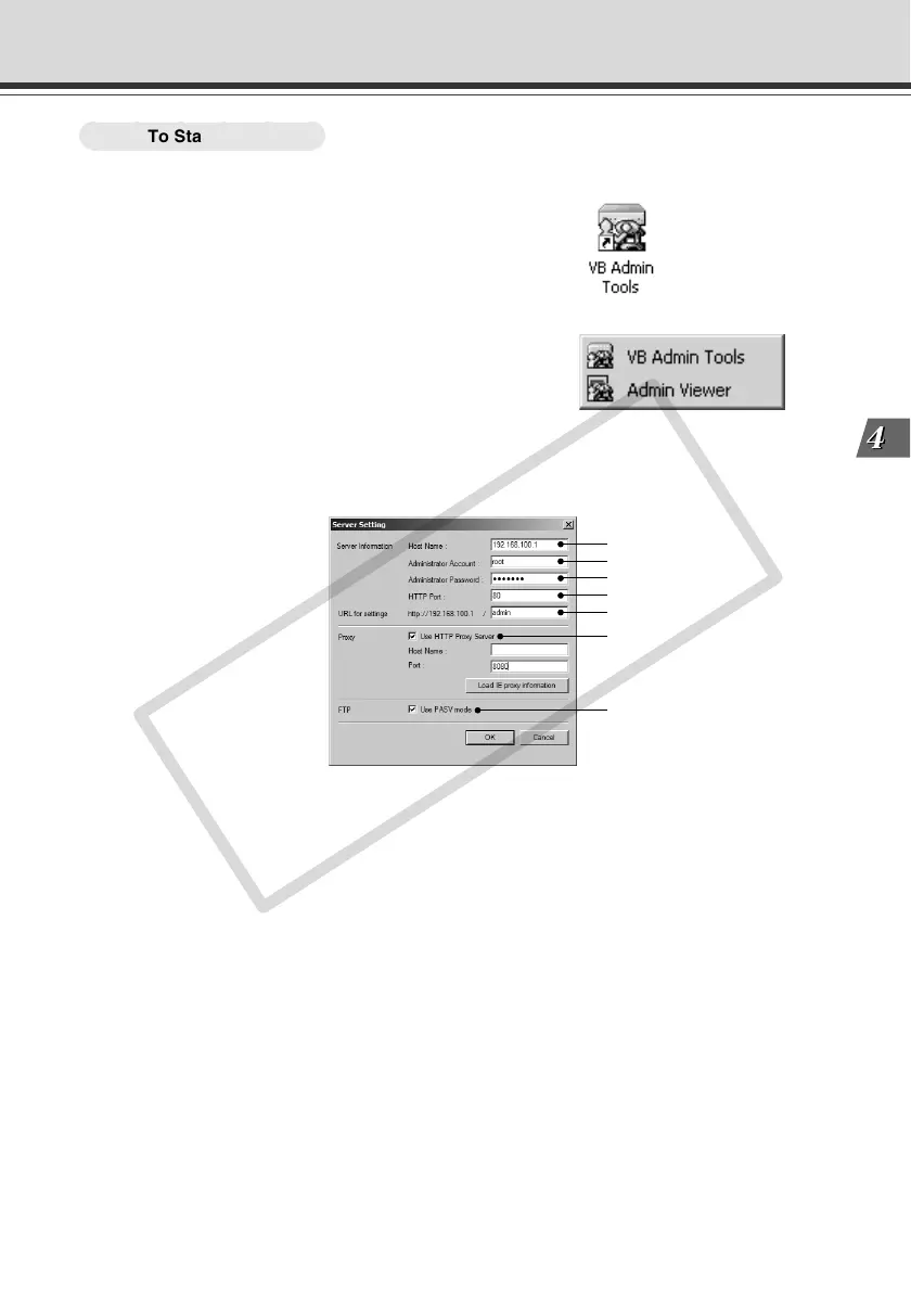 To use VB Administration Tools, it must first be connected to the VB-C50FSi/VB-C50Fi. Enter